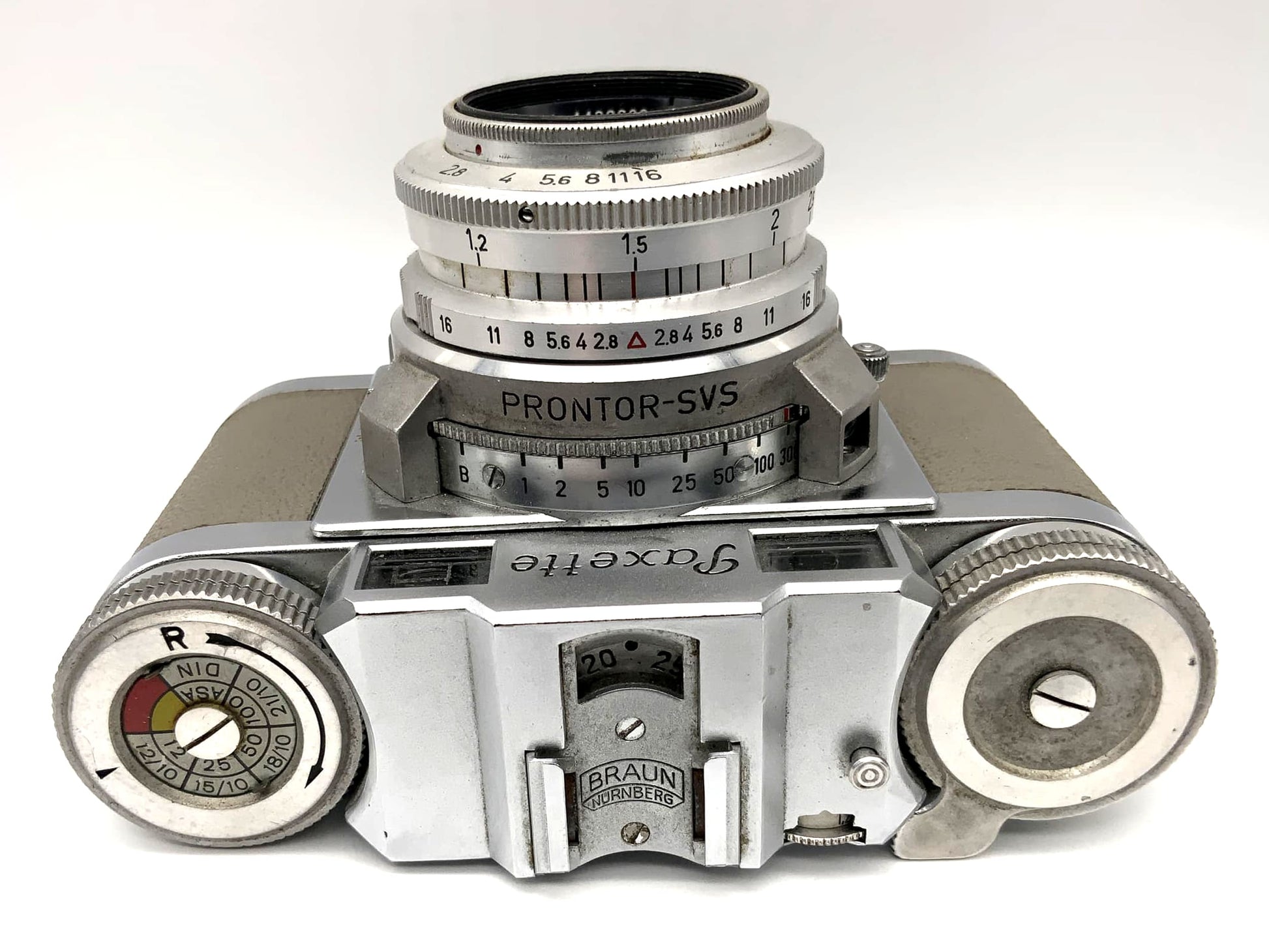 Braun Paxette viewfinder camera + Steinheil München Cassarit 2.8/45 Prontor-SVS grey