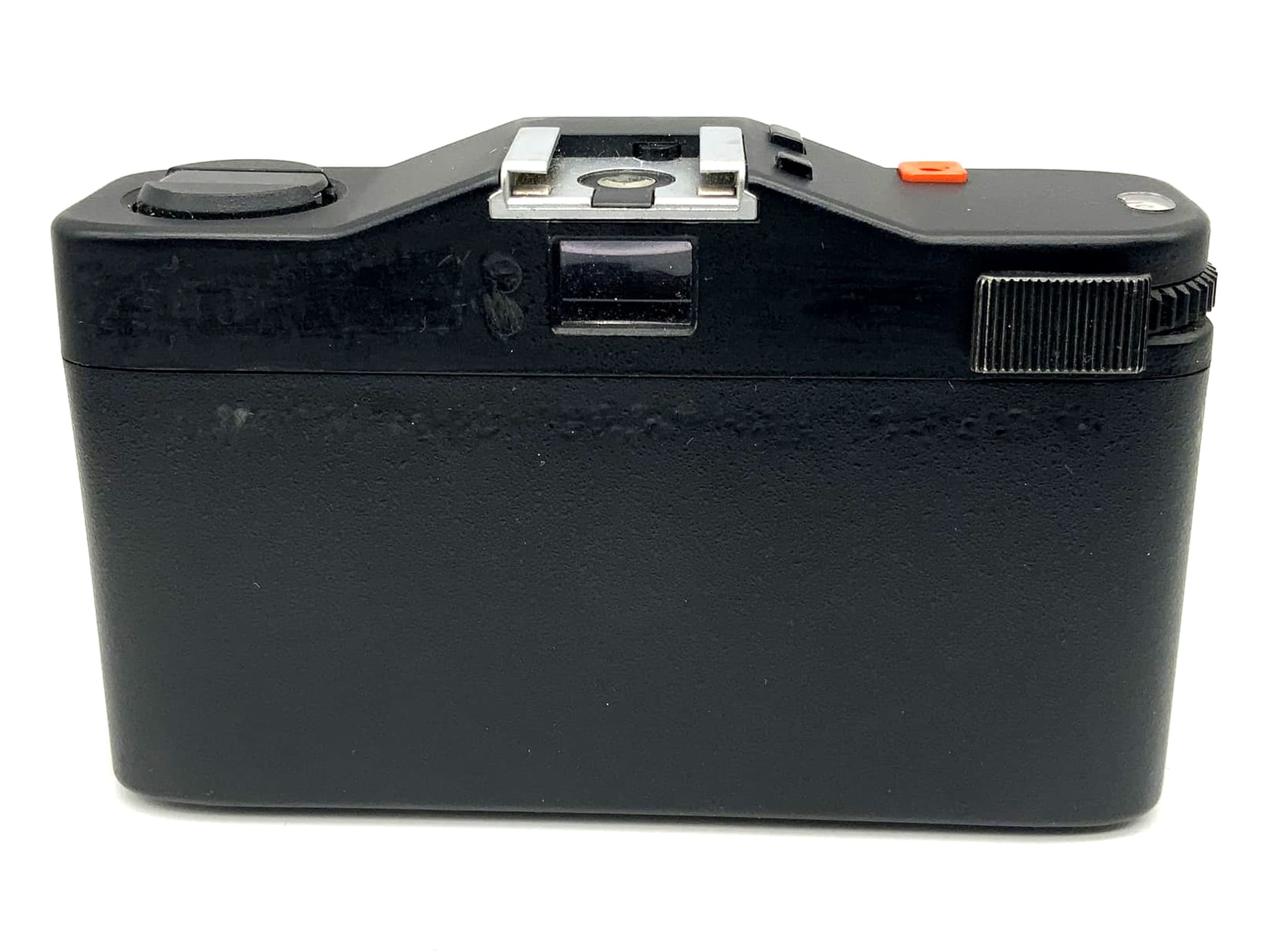This analog viewfinder camera is technically functional. The shutter, release, film advance, and, if applicable, the light meter have been tested. Due to visible signs of use—such as scratches, dull spots, or minor dents—its condition has been rated as "Acceptable." The viewfinder may be cloudy or dusty.