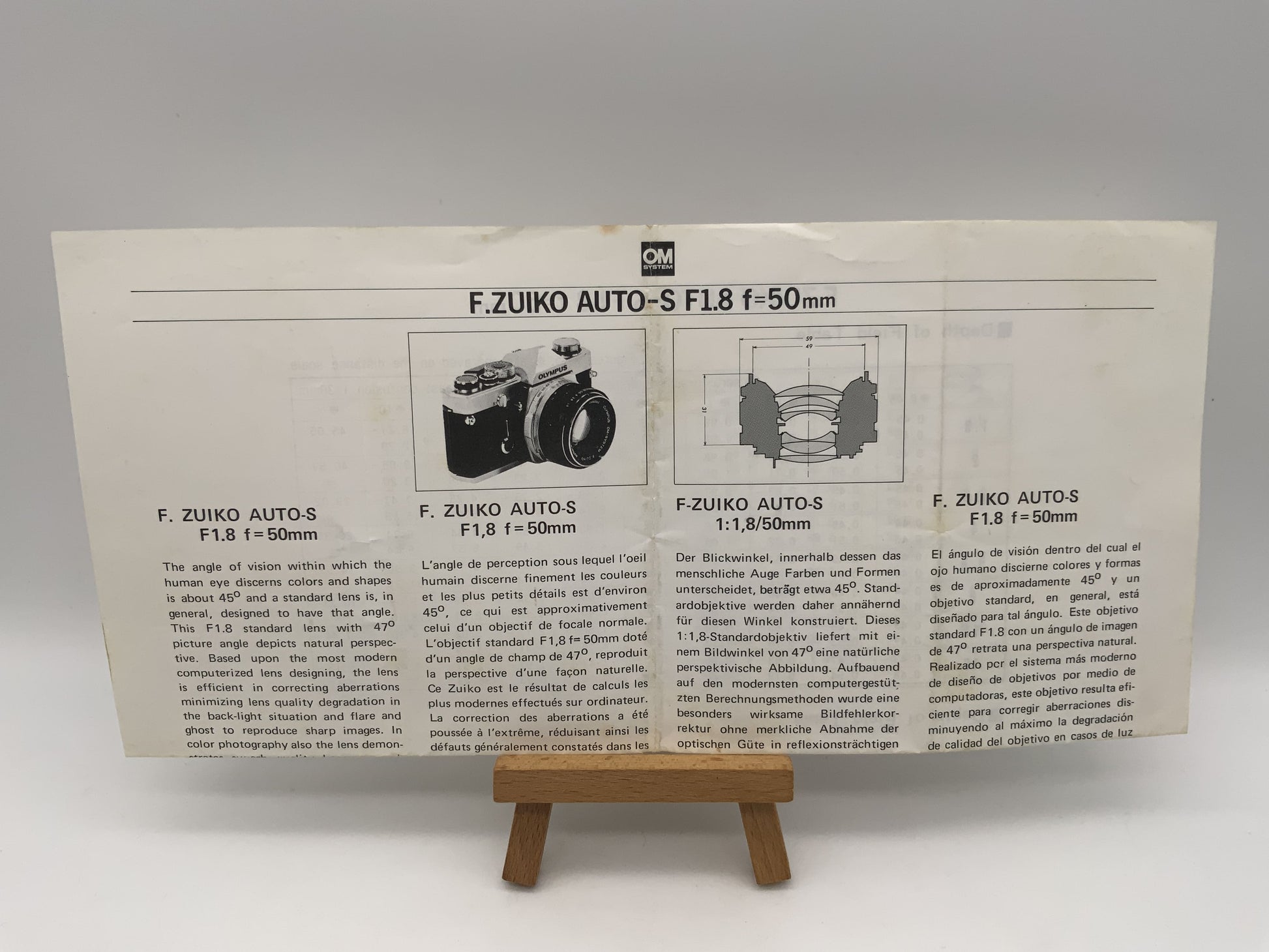 Manuel d'utilisation de l'objectif Olympus F.Zuiko Auto-S F1.8 f=50mm (allemand)